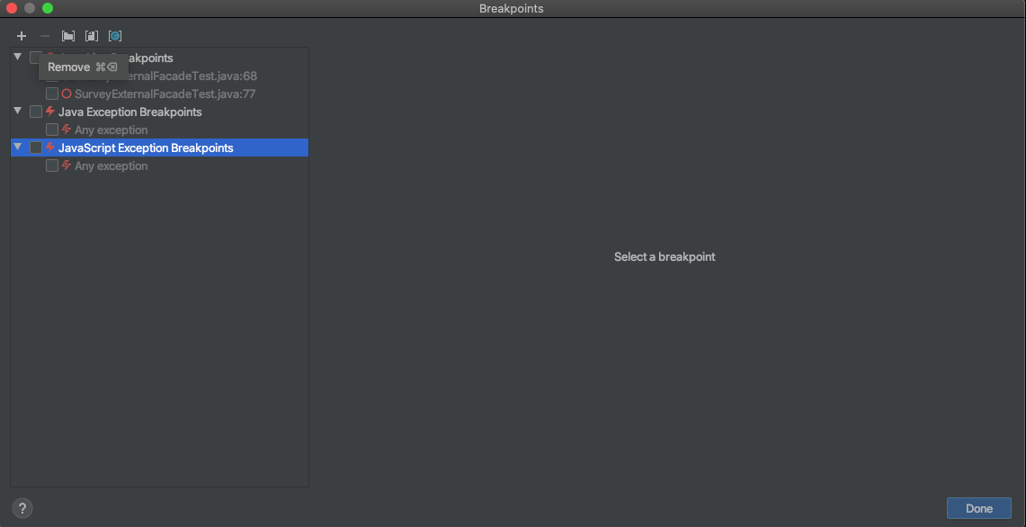 Run - View Breakpoints 를 들어가서