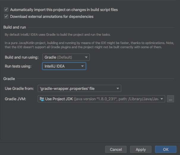 File -> Settings ->Build,Execution, Deployment -> Build Tools -> Gradle