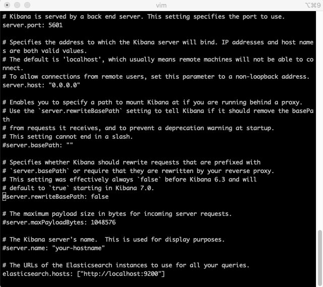 elasticserarch.host: ["http://localhost:9200"] 주석 제거