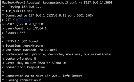 curl -v [Log 수집 서버 IP]:5601 ( 로컬일 경우 127.0.0.1)