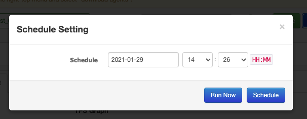 바로 Run Now를 하셔도 되고, 시간을 맞춘다음에 원하는 시간에 테스트를 진행할 수도 있어요