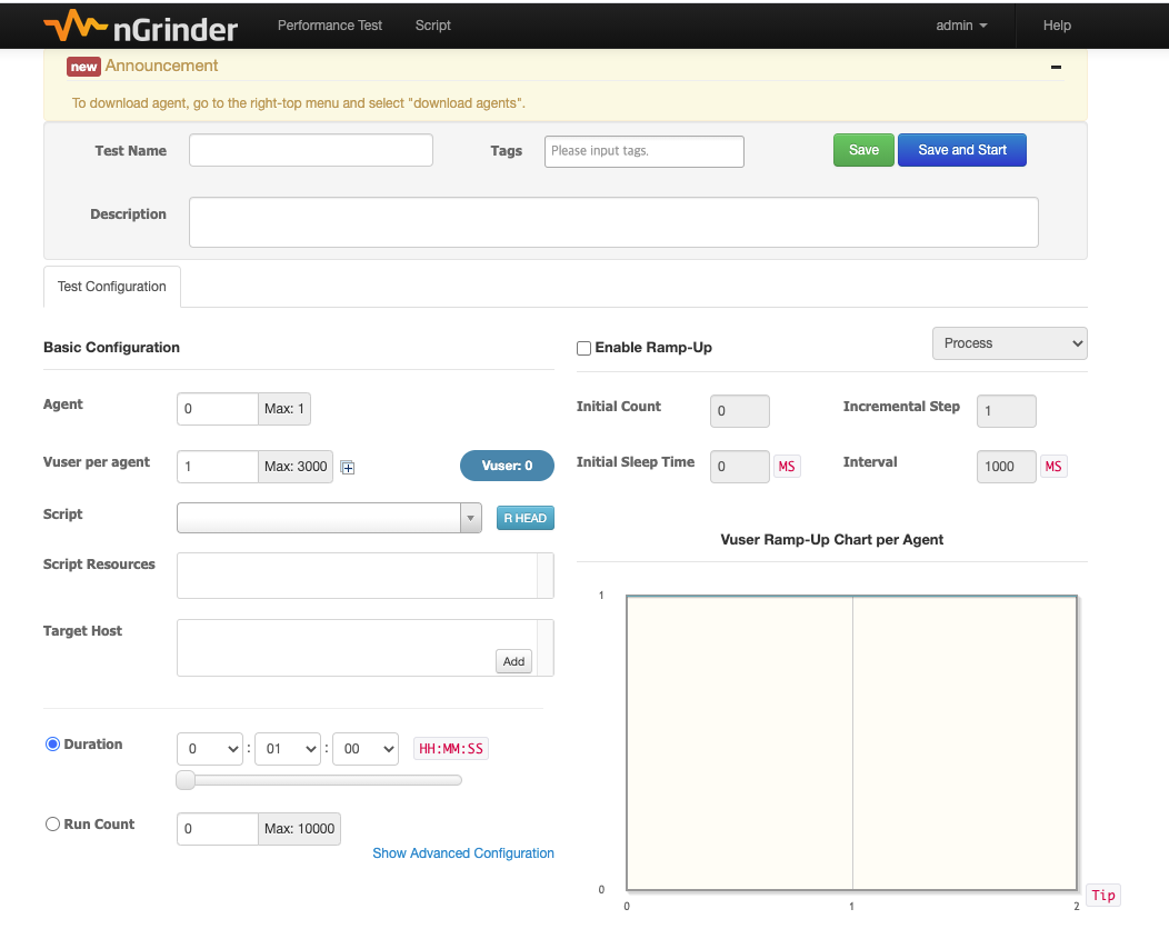 Vuser는 실제로 테스트를 돌리게할 사용자 수입니다.