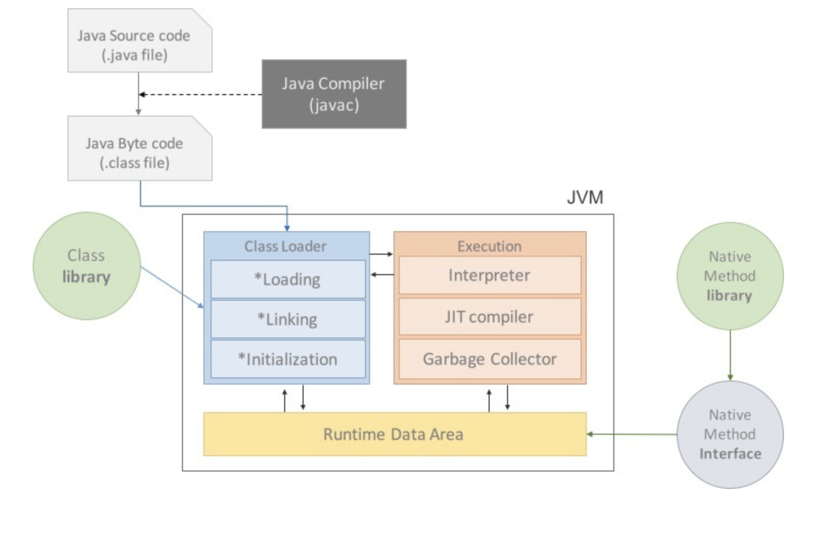 - Java에서 컴파일을 하면 Bytecode로 변환이 되는데, 이는 기계가 바로 읽을 수 있는 형태가 아니다.